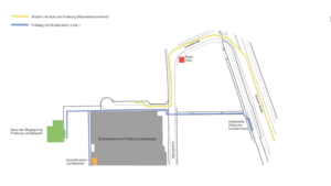 Autofahrer müssen von der Elsässerstraße in die Einmündung beim „Roten Otto“ einbiegen, fahren an der nächsten Kreuzung links und können die Parkplätze oder Tiefgarage vom Einkaufzentrum benutzen. Bei der Nutzung der Tiefgarage können Parkgebühren anfallen.